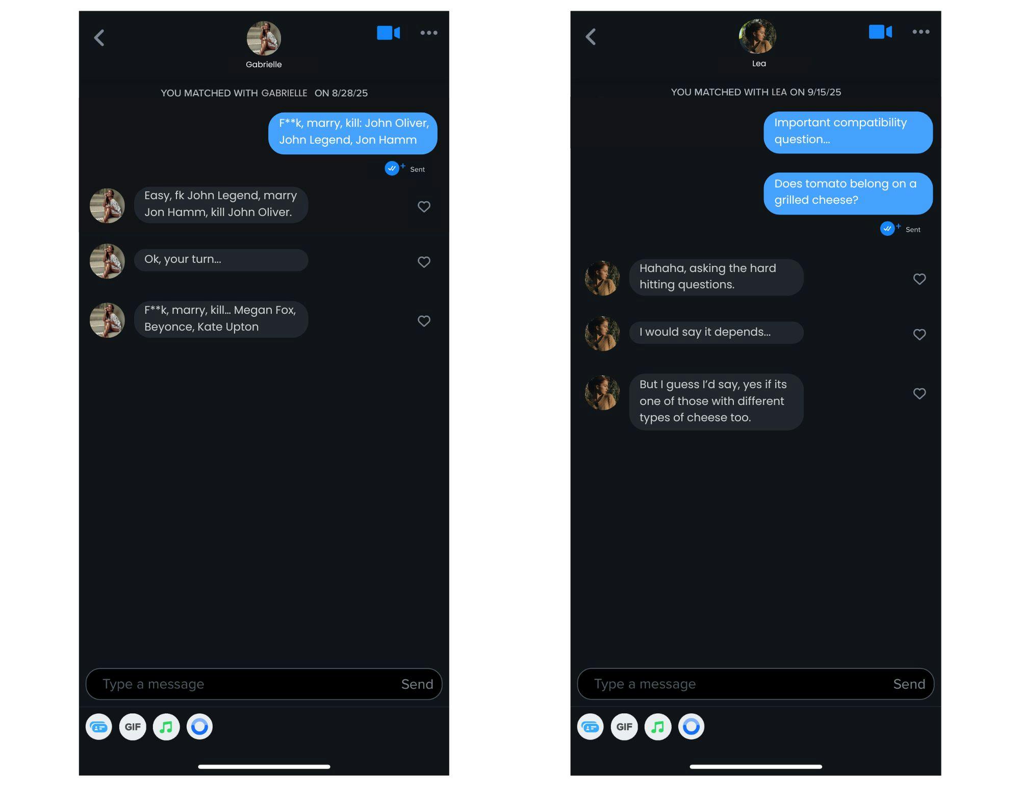 - "Important compatibility question...[insert X question]" (similar to the example above the X should be something light-hearted and easy to answer)